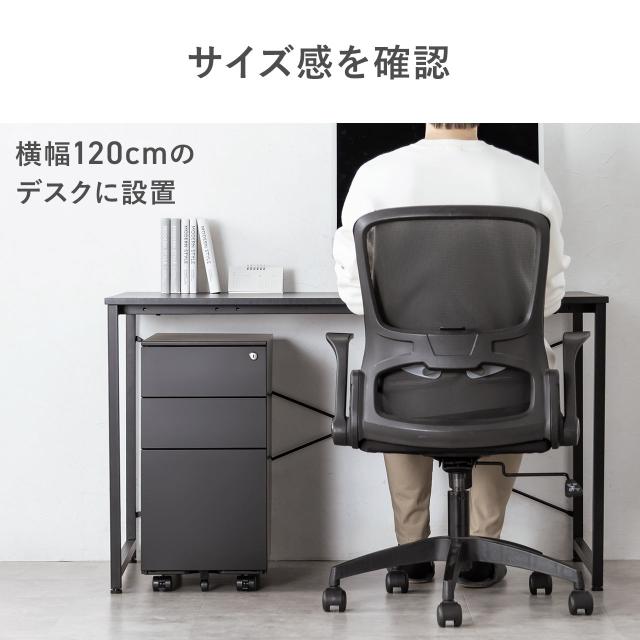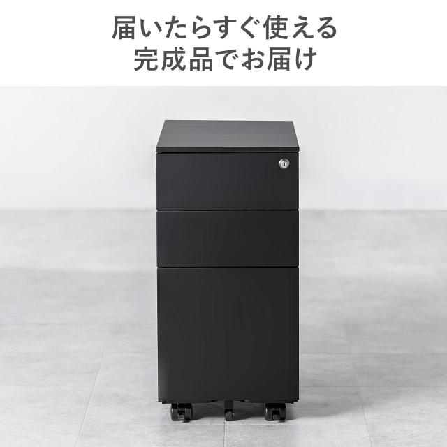 ⇒ご購入の前にご確認下さい書類や小物の収納に便利なスリムタイプのデスクワゴン。スチール製。前面に取っ手がないので、スタイリッシュに設置ができます。鍵付きで、3段一括ロックに対応。3段タイプのスリムキャビネット。ブラック。【WEB限定商品】