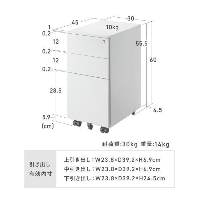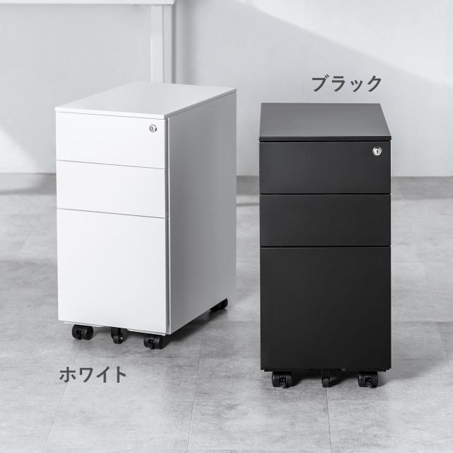 デスクワゴン キャビネット 3段 幅30cm 奥行き45cm 高さ60cm 鍵付き 一括ロック スチール ブラック ホワイト[100-SNW029]