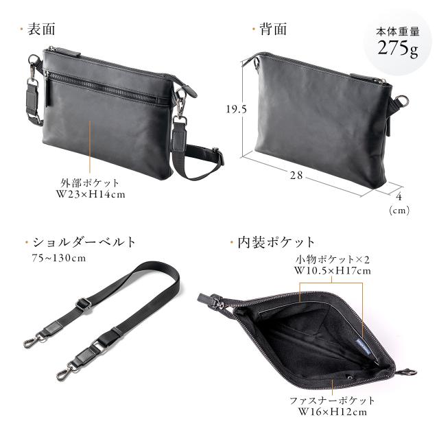 サコッシュ 本革 4WAY ショルダーバッグ 薄型 iPad 11インチ対応 クラッチバッグ 肩掛け バッグ スマホポーチ メンズ ブラック ブラウン ネイビー[200-BAG095]