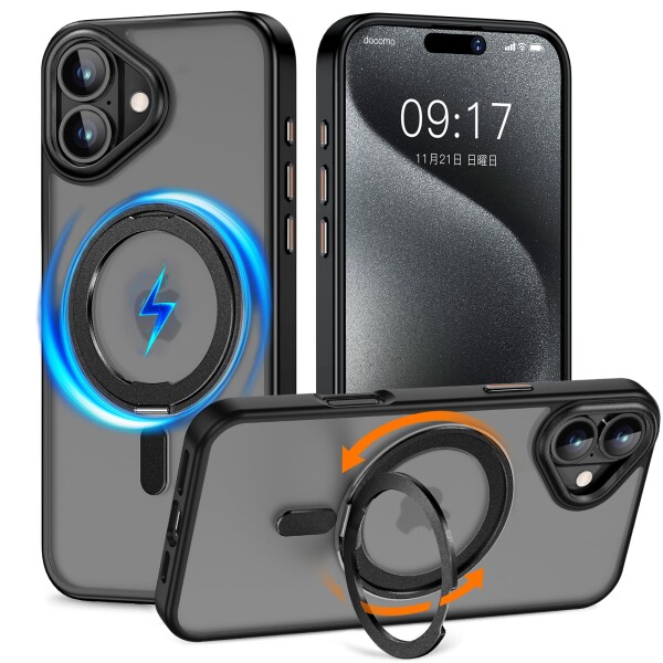 【超磁力、MagSafe対応!】 iphone 16 用 ケース。ケースの内部には360度全周一体型磁石が埋め込まれており、高い吸着力でしっかりと固定しながら充電が可能です。MagSafeアクセサリーもしっかりとケースに吸着します!