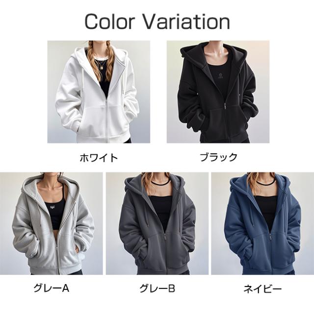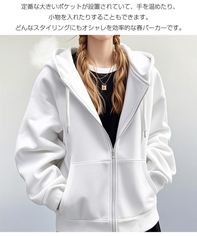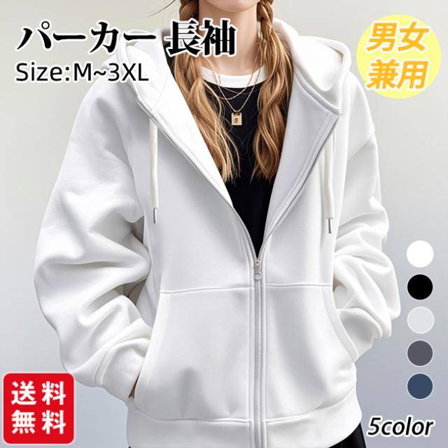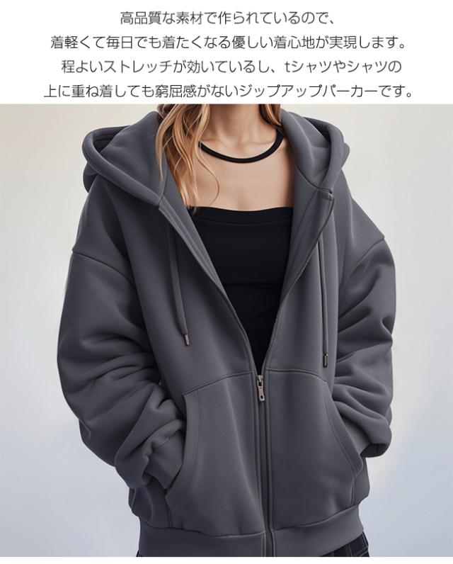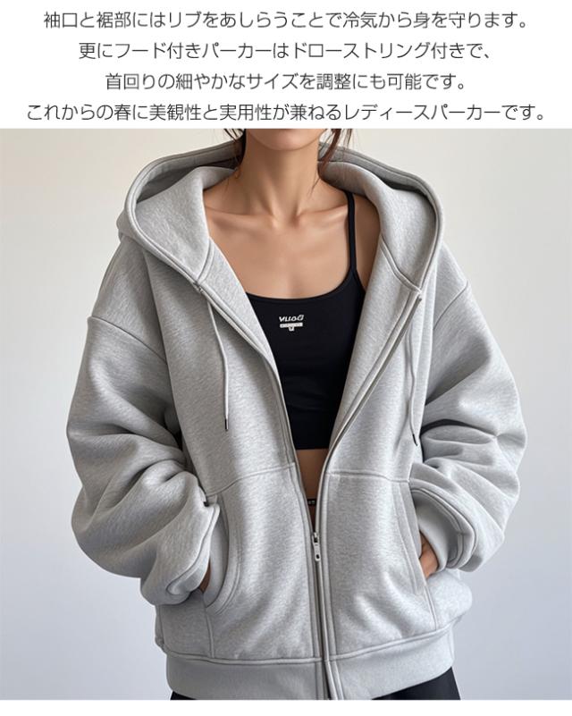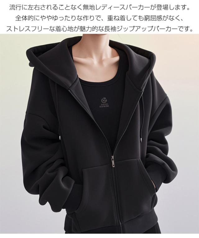 秋新作 パーカー レディース 長袖 裏起毛 2TYPE ジップアップ 無地 ゆったり フード付き 大きいサイズ 春秋 冬服 男女兼用