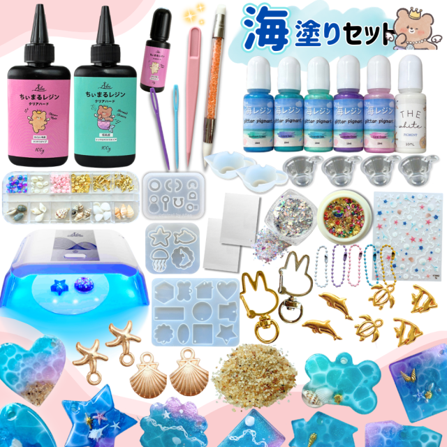 【レジンセット】【送料無料】 海塗り セット キット UVレジン UV/LEDライト付き 初心者 手芸 クラフト 材料 道具付き ハンドメイド 工作 夏休み 海ぬり おしゃれ かわいい 大人 子供 プレゼント 人気 おすすめ Ailes エール