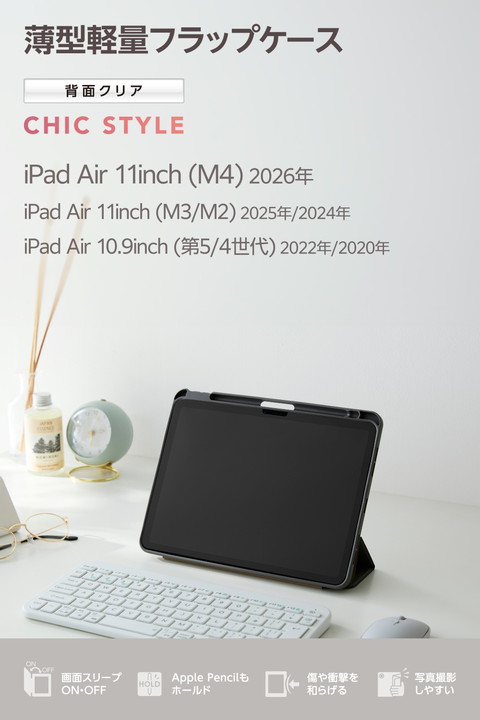 【在庫処分・お買い得!】 エレコム iPadAir 11inch M3/M2 用 フラップケース 薄型軽量 CHIC STYLE スリープ対応 ケース カバー 背面クリア チャコールグレー ┃TB-A25MWVJM3GY