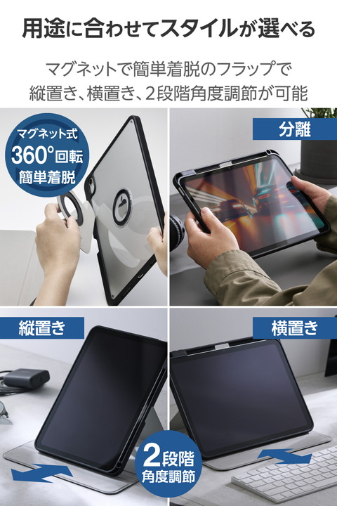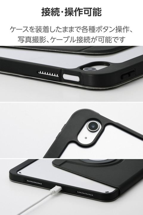エレコム iPad 11inch A16 用 フラップケース 360度回転 背面クリア 2アングル スリープ フラップ ケース カバー マグネット着脱 ブラック ┃TB-A25RMG360BKN