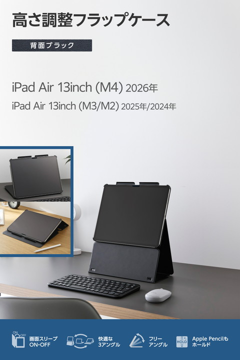 【在庫処分・お買い得!】 エレコム iPad Air 13インチ M2 用 フラップケース 高さ調整 合成皮革 スリープ対応 フラップ ケース カバー ソフトレザー ブラック ┃TB-A25XWVH2BK