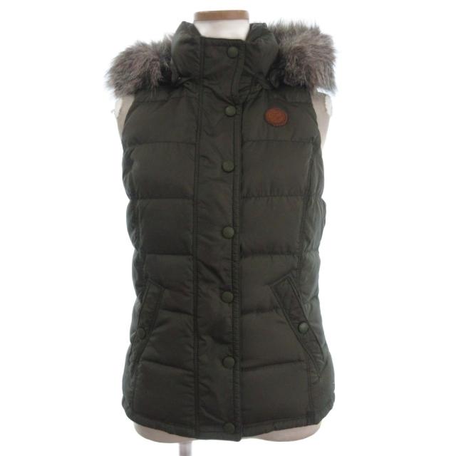 【中古】トミーヒルフィガー ダウンベスト ジップアップ スタンドカラー フード ファー カーキ M ■ECT レディース