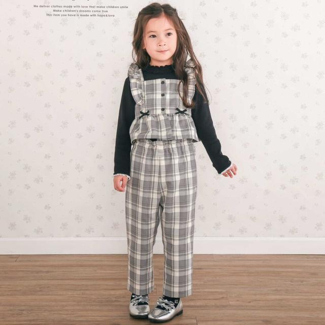【30%OFF 送料無料 2025秋冬 キッズ 子供 女の子】 SLAP SLIP(スラップスリップ)ヘリンボーンチェックフリルビスチェ+パンツセットアップ