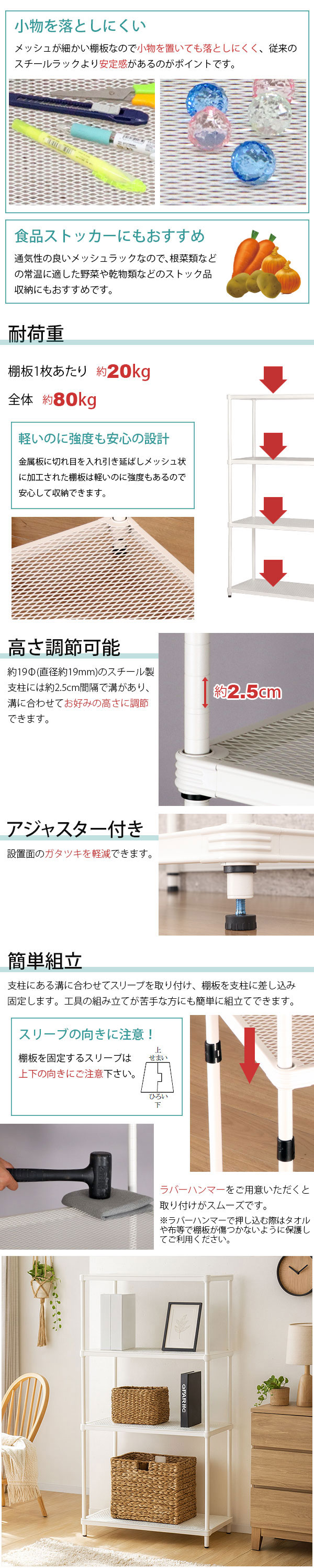 湿気に強い どんな空間にも馴染む メッシュ素材 メッシュ仕様の棚板 ホコリが溜まりにくい 湿気がこもりにくい 網目が細かい 文具 アクセサリー 細かな物も置ける 奥行スリム 部屋を圧迫しない ナチュラル 棚板可動式 自由にカスタマイズ 高さ調整可能 スチールフレーム 日常使い 重めの収納 簡単に組み立てられる 圧迫感がない 狭いスペースにもぴったり 自由に高さ調整できる キッチンアイテム 観葉植物