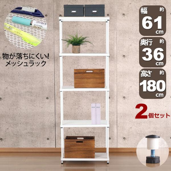 2個セット 物が落ちにくい スチールラック 5段 (約)幅60cm 奥行35cm 高さ180cm メッシュ棚板 収納棚 スリム メッシュラック ホワイト 白 おしゃれ 頑丈 棚板耐荷重20kg オープンラック 隙間収納 キッチンラック ランドリー収納 高さが変えられる棚 アジャスター付き EPR-6018