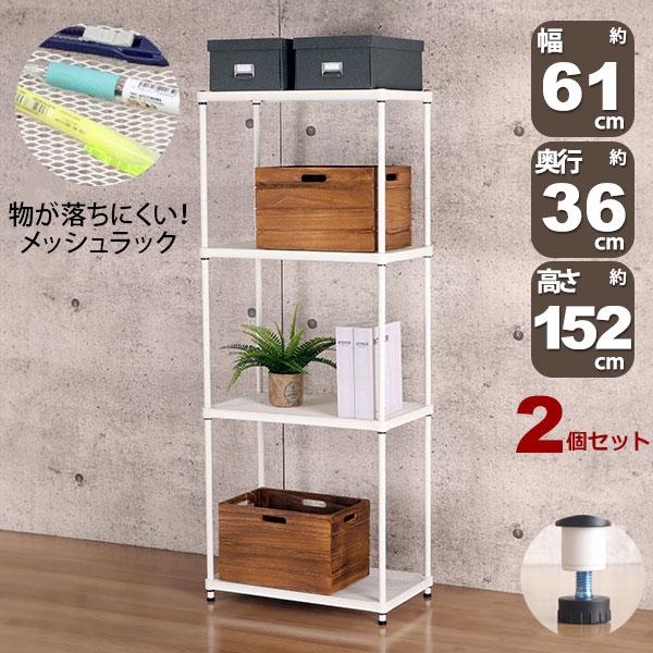 2個セット 物が落ちにくい スチールラック 4段 (約)幅60cm 奥行35cm 高さ152cm メッシュ棚板 収納棚 スリム メッシュラック ホワイト 白 おしゃれ 頑丈 棚板耐荷重20kg オープンラック 隙間収納 キッチンラック ランドリー収納 高さが変えられる棚 アジャスター付き EPR-6015