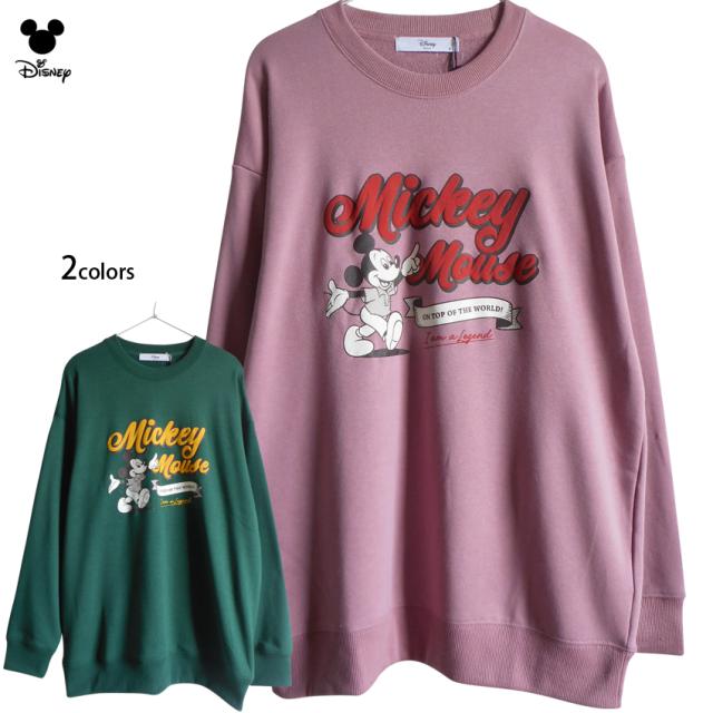 送料無料 ディズニー トレーナー ミッキーマウス ミッキー スウェット 裏パイル地 disney レディース メンズ ペアルック トップオブザワールド 指差し ウォーキング 歩く レジェンド レトロ アメカジ ディズニーランド 春秋 ワイド ゆったり TDL くすみカラー ピンク 緑