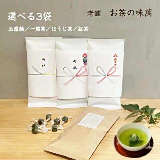 【日本茶葉専門店】 味萬 3袋セット 選べるお茶 玉露飴 一煎茶 ほうじ茶 紅茶 国産 静岡県産 緑茶 ティーバッグ ギフト 挨拶 退職 御祝 内祝い 熨斗 ポスト投函 送料無料
