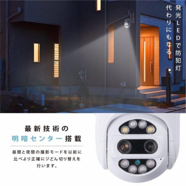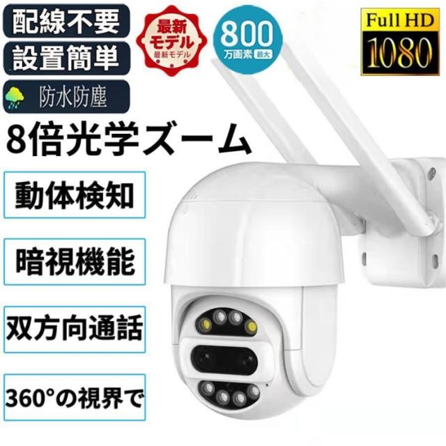 【正規品】防犯カメラ 屋外 ワイヤレス WIFI 最大800万画素 8倍光学ズーム 2眼レンズ 自動追跡 夜間撮影 遠隔監視 マイク内蔵 SDカード録画 防水 ダミー