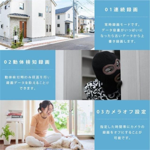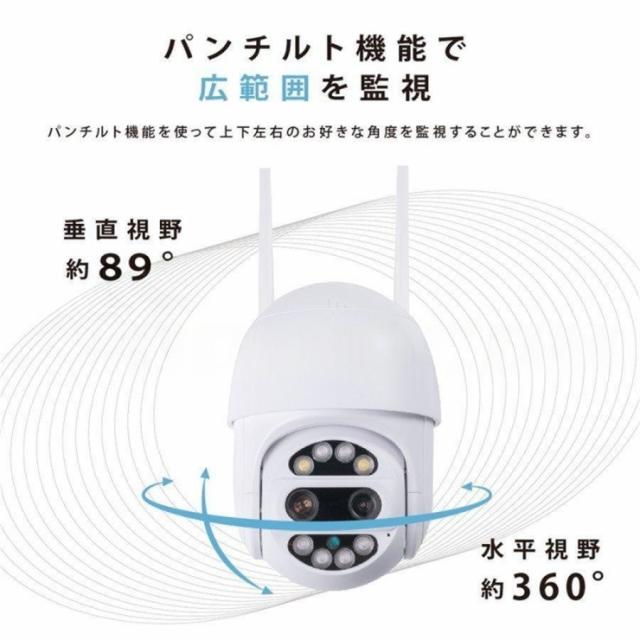 ・パンチルト機能(水平約360°、垂直約89°)で360°死角なしを監視