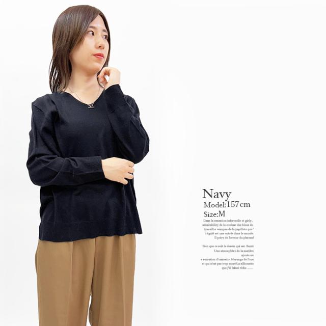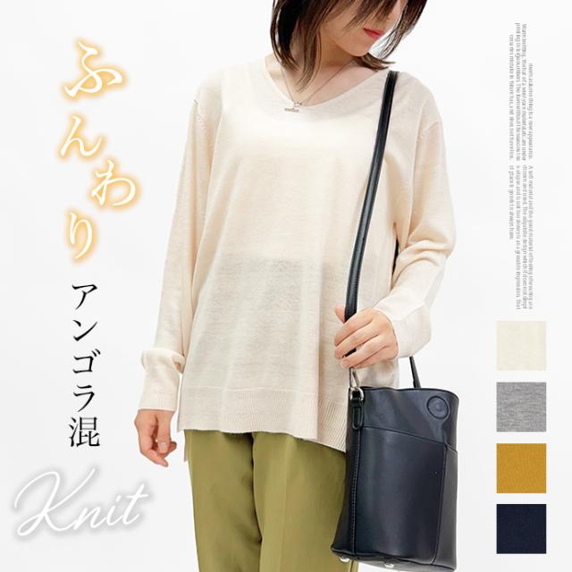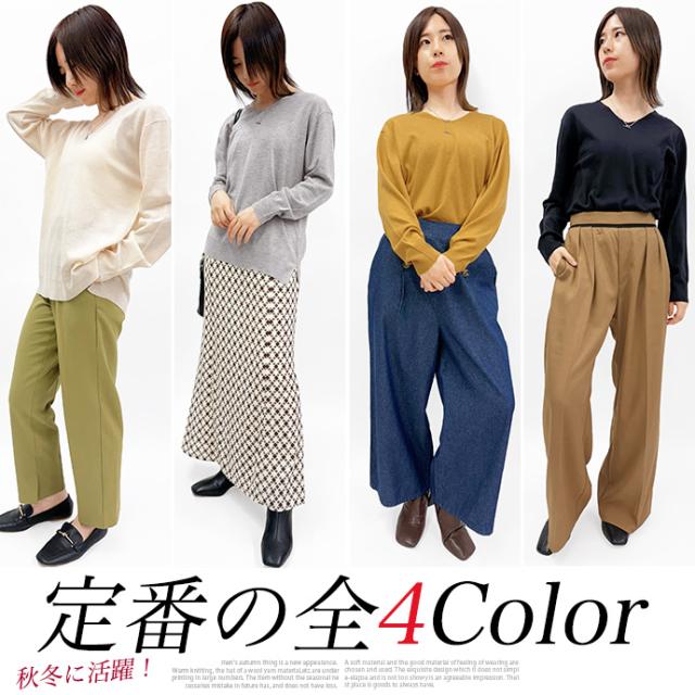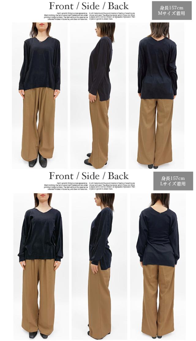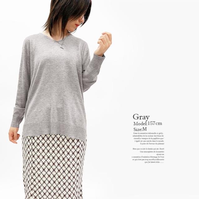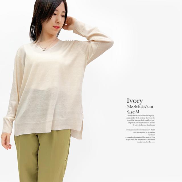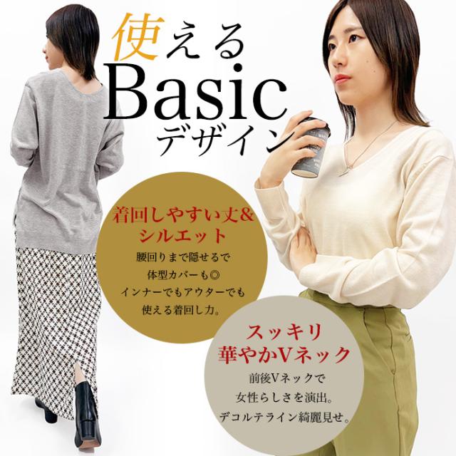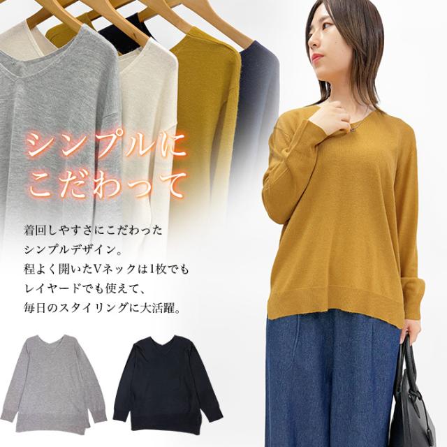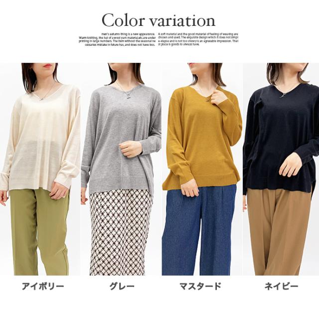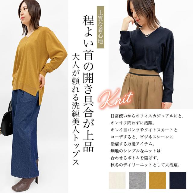 ニット セーター トップス プルオーバー インナー 前後Vネック 長袖 滑らか スリット 無地 オフィス 仕事 フォーマル カジュアル レディース 送料無料