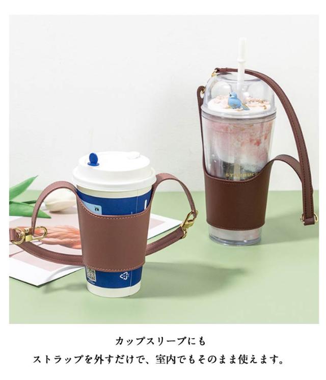| コンビニやカフェで買ったコーヒーにも対応! 愛用のタンブラーや水筒、ペットボトルもOK! アイスホット対応で一年中お使いいただけます! ストラップの付け替え簡単 お買い物で荷物が増えても大丈夫! いつでも使いやすいスタイルに。 カップスリーブにも ストラップを外すだけで、室内でもそのまま使えます。 メンテナンス性もばっちリ 傷が付きにくく、汚れもさっと拭き取れる! Hot:持っても熱くない! Ice:結露で濡れない! 丈夫でオシャレPUレザー ホットにもアイスにも使えるから、 1年を通して長くお使いいただけます。 持ち歩きに便利 柔らかいからコンパクトに収納可能。 使わない時はバッグやボケットにも人ります。 対応サイズ タンブラ一直径約6.5〜8cm 面ファスナ一で簡単サイズ調節 取り付け簡単で様々なサイズのタンブラ一に対応します。 | |
