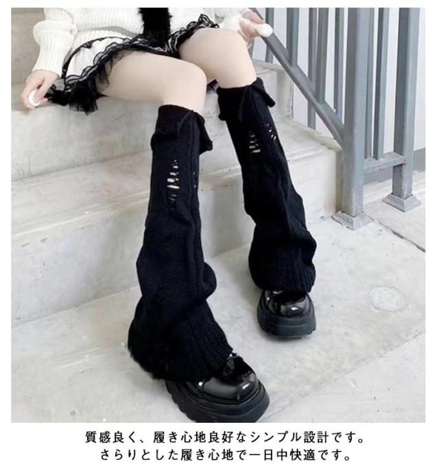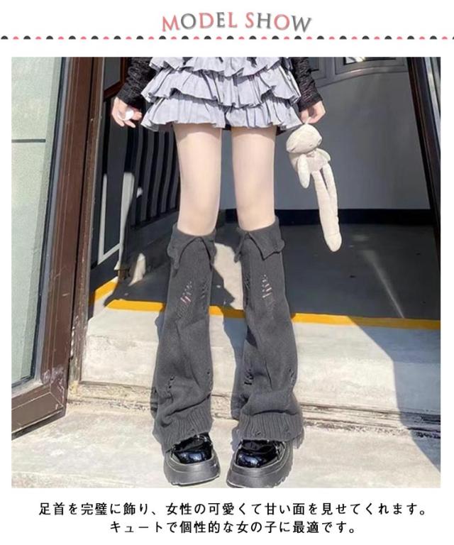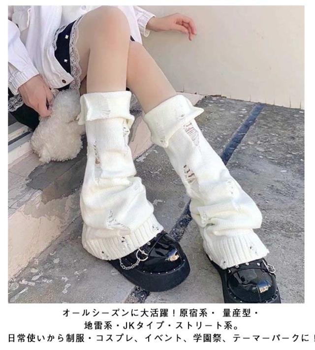 レッグウォーマー JK レディース ルーズソックス 病み可愛い サブカル系 冷え対策 レッグカバー ギャル 靴下 サブカル系 破れ穴 女子 ゴシック風 Y2K 原宿パンク ゴスロリ サブカル系 地雷系 暖かい
