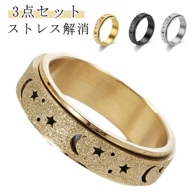 リラックス ストレス解消 リング 3点セット 緩和 フィジェットリング 癖対策 フィジェットトイ ステンレススチール リング 指輪 大きいサイズ 親指 対応 3点セット リングスピナー
