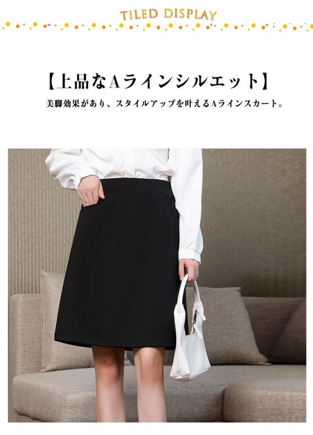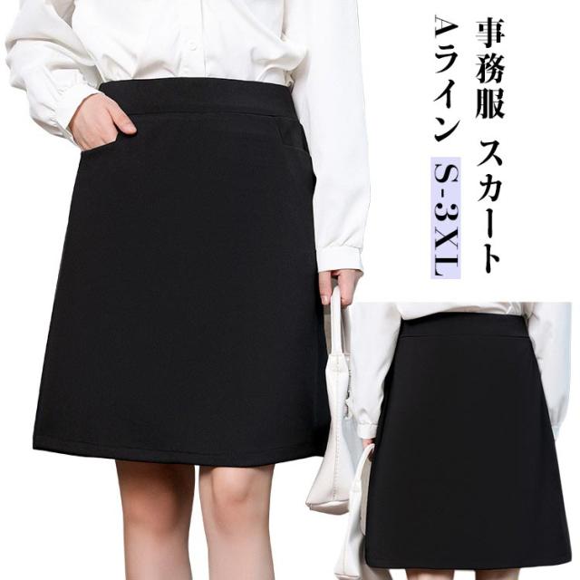 事務服 ひざ丈スカート レディース Aライン タイトスカート 制服 大きいサイズ 膝丈 スカート ボトム 小さいサイズ 通勤 OL 事務服 面接 オフィス 黒