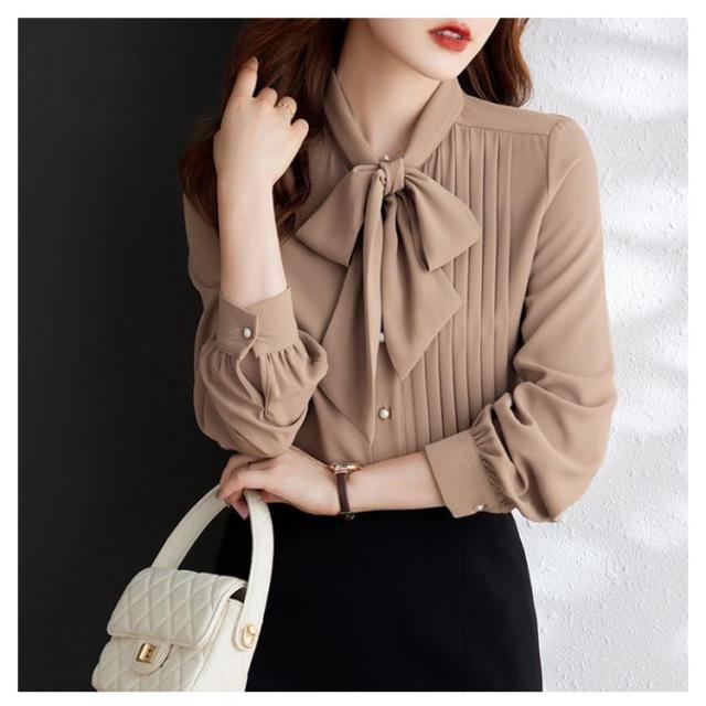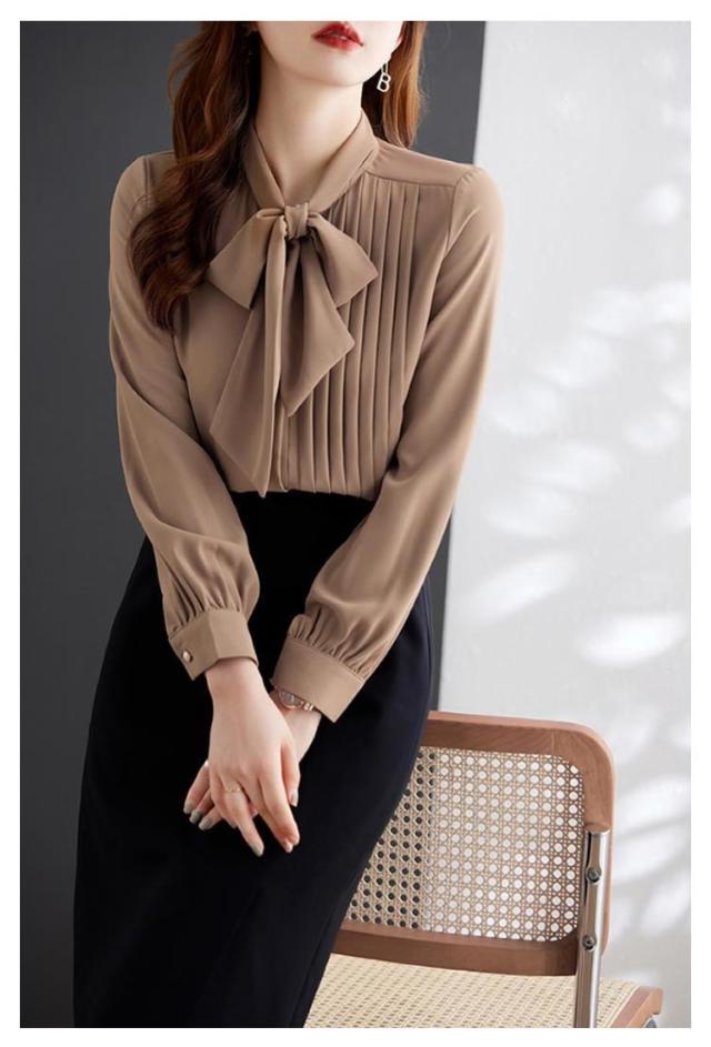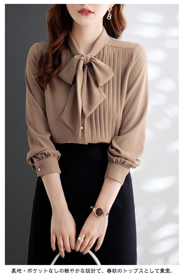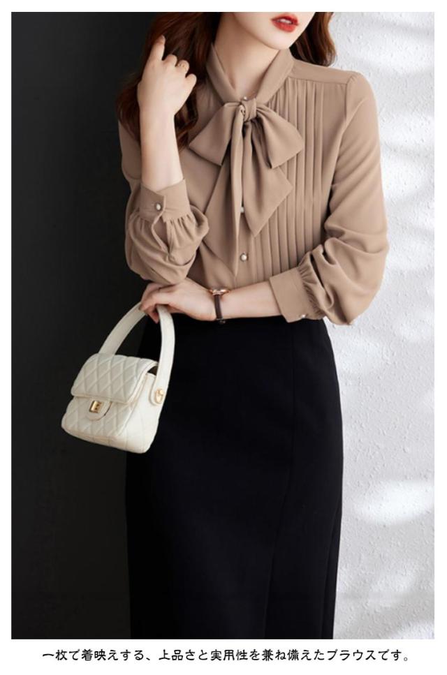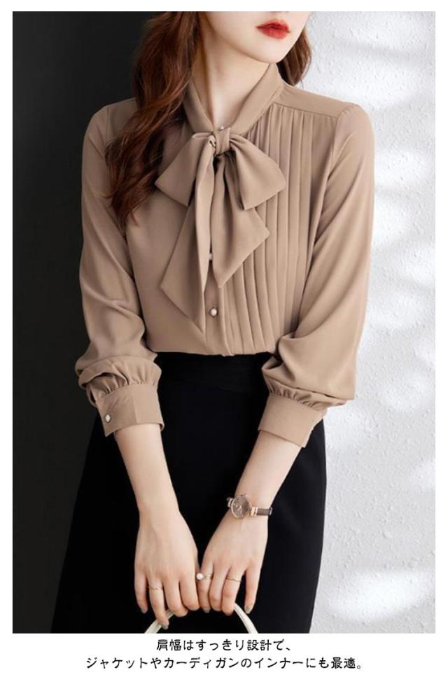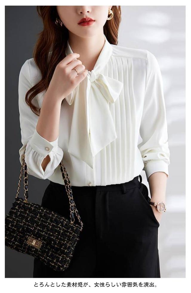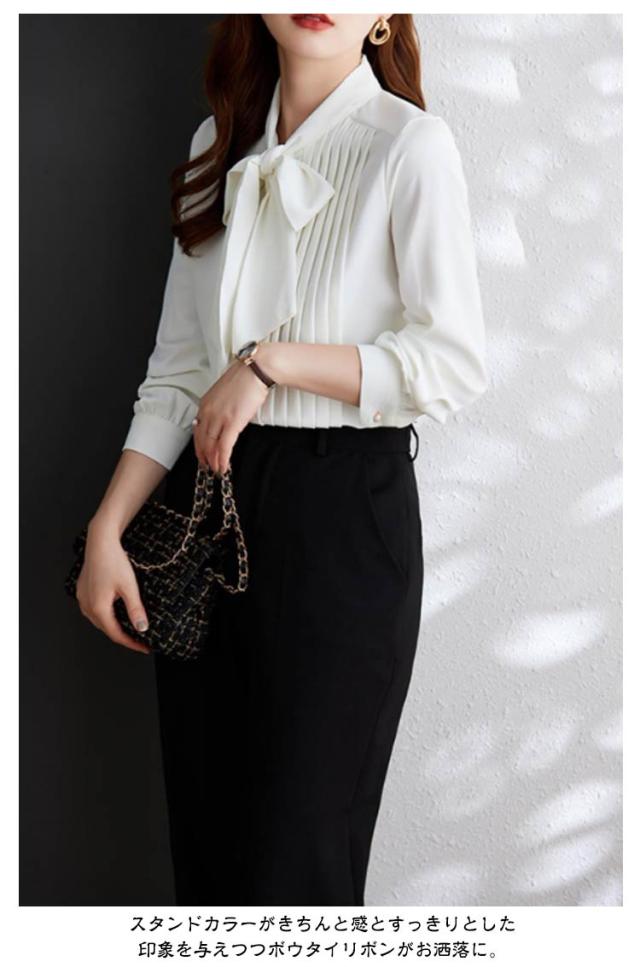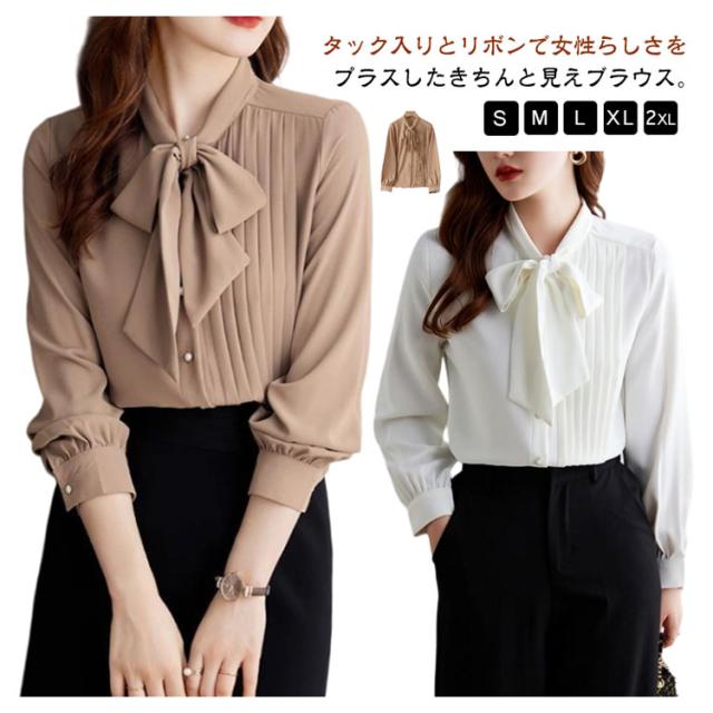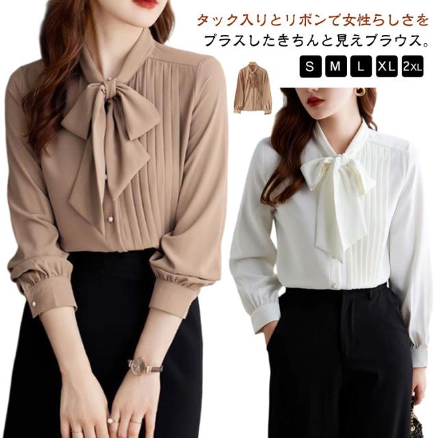トップス かわいい タック入り リボン きれいめ リボンタイ 長袖 レディース ボウタイブラウス ボウタイブラウス ボウタイ シャツブラウス フリルネック ハイネック シャツ とろみ 通勤 オフィス 入学式 卒業式