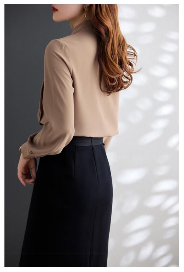 | タック入りとリボンで女性らしさをプラスしたきちんと見えブラウス。 とろんとした素材感が、女性らしい雰囲気を演出。 スタンドカラーがきちんと感とすっきりとした印象を与えつつボウタイリボンがお洒落に。 肩幅はすっきり設計で、ジャケットやカーディガンのインナーにも最適。 裏地・ポケットなしの軽やかな設計で、春秋のトップスとして重宝。 一枚で着映えする、上品さと実用性を兼ね備えたブラウスです。 | |