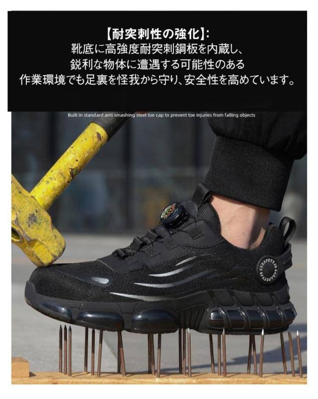 通気 鋼先芯 軽量 セーフティーシューズ ダイヤル式安全靴 おしゃれあんぜん靴 安全靴 防滑安全靴 メンズ 作業靴 労働保護靴 安全靴 作業靴 耐穿刺性 耐衝撃性 滑り止 男女兼用 足が疲れない安全靴