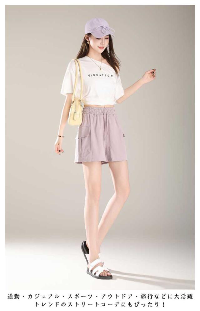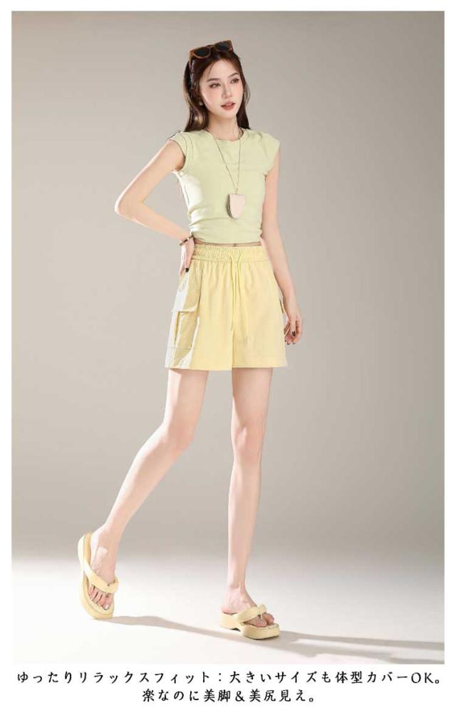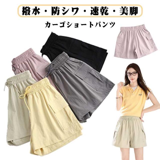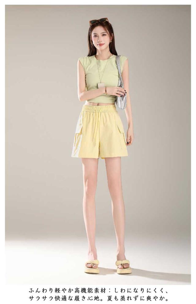 ハーフパンツ 夏 ショートパンツ 撥水 ウエストゴム 美脚 薄手 ショートカーゴパンツ レディース 涼しい ショートパンツ ボトムス 短パン キュロット 速乾 ゆったり 大きいサイズ ワイドパンツ 部屋着 ルームウェア スポーツ 黒 ピンク グレー イエロー