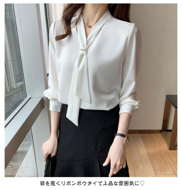 きれいめ トップス 卒業式 ボウタイ リボン 長袖 フォーマル レディース ブラウス リボンタイ ボウタイブラウス シャツブラウス とろみ vネック 通勤 オフィス 入学式 フリルネック セレモニー オケージョン