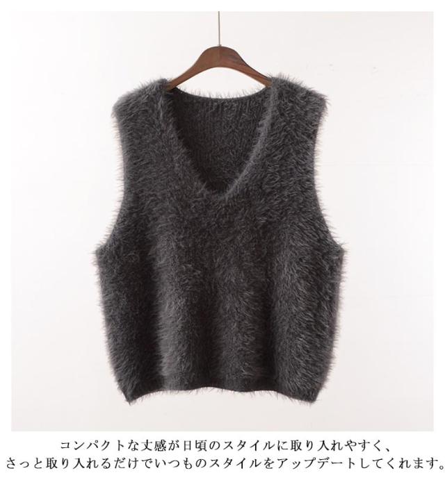 シャギーニットベスト レディース Vネック ノースリーブ 袖なし トップス レイヤード シャギーニット プルオーバー シャギーベスト 毛足長め セーター おしゃれ きれいめ