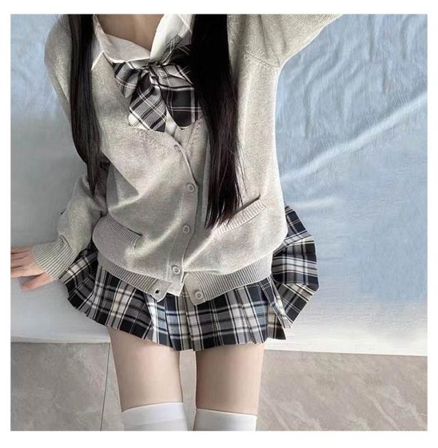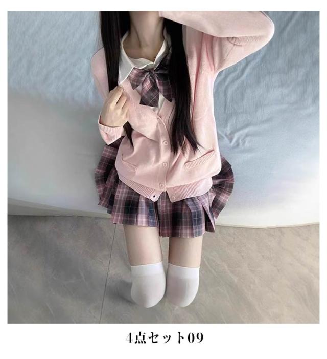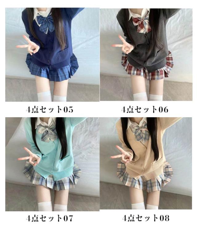 制服 コスプレ 学生服 スクール 女の子 レディース 4点セット jk スクールウェア 入学式 卒業式 中学生 高校生 女子高生 仮装 衣装 スカート シャツ 長袖 カーディガン リボン チェックスカート セット 春 秋服 かわいい