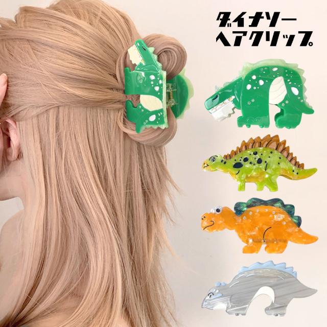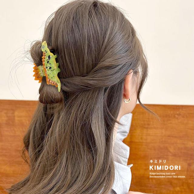 ヘアクリップ 恐竜 ダイナソー 動物 ハーフアップ レディース ヘアアクセサリー バンスクリップ アニマル (hac361)