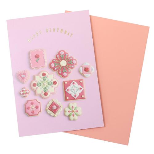 美しいアイシングクッキーがメッセージをより華やかに見せてくれそうなバースデーカード