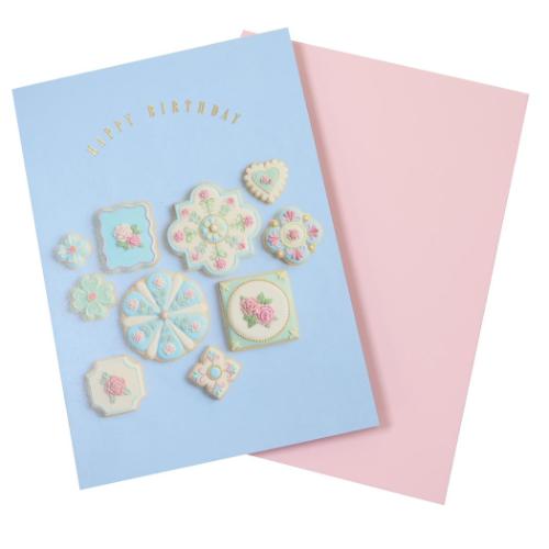 美しいアイシングクッキーがメッセージをより華やかに見せてくれそうなバースデーカード