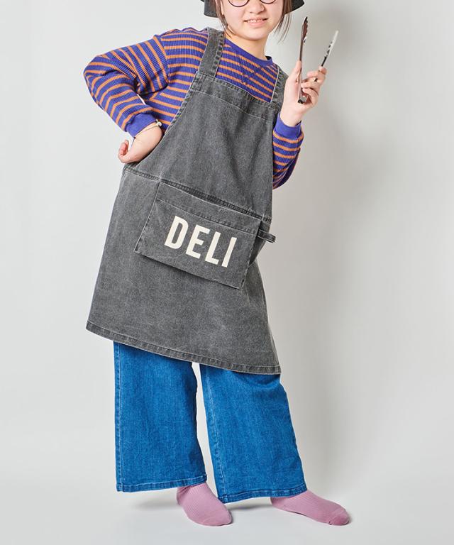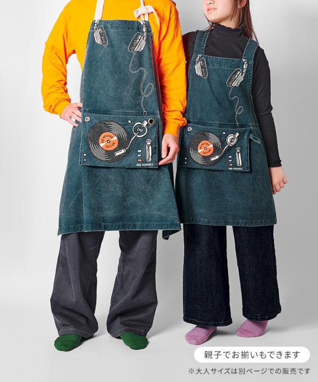 個性的なデザインとウォッシュ加工が施された子供用エプロン