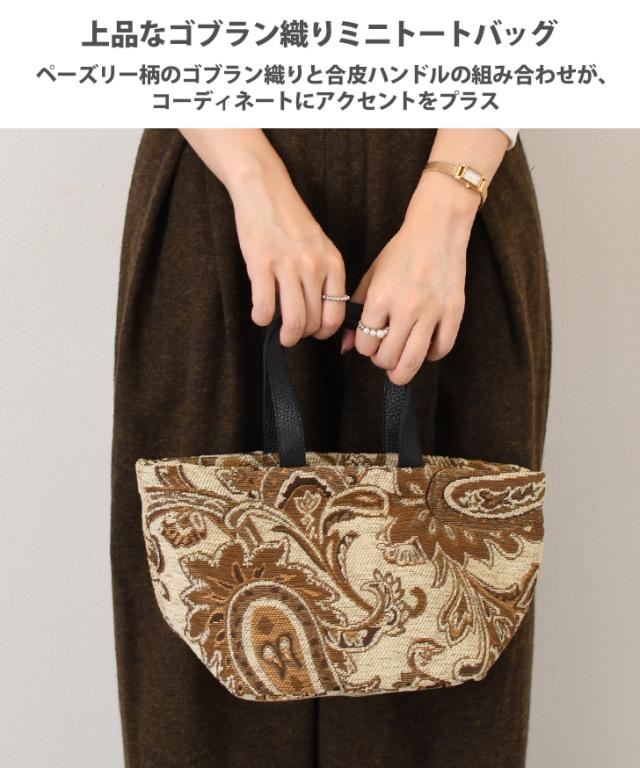 新作 ペーズリー柄 ゴブラン織り ミニトートバッグ レディース トートバッグ 軽量 小さめ ミニトート ハンドバッグ ランチバッグ 弁当 水筒 マチ広 コンパクト 自立 手提げ おしゃれ 上品 通学 通勤 旅行