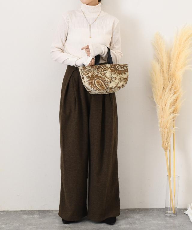ペーズリー柄のゴブラン織りと合皮ハンドルの組み合わせが、
