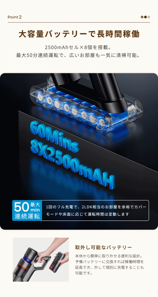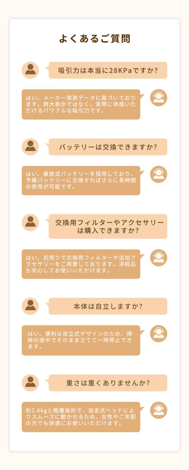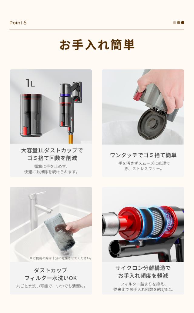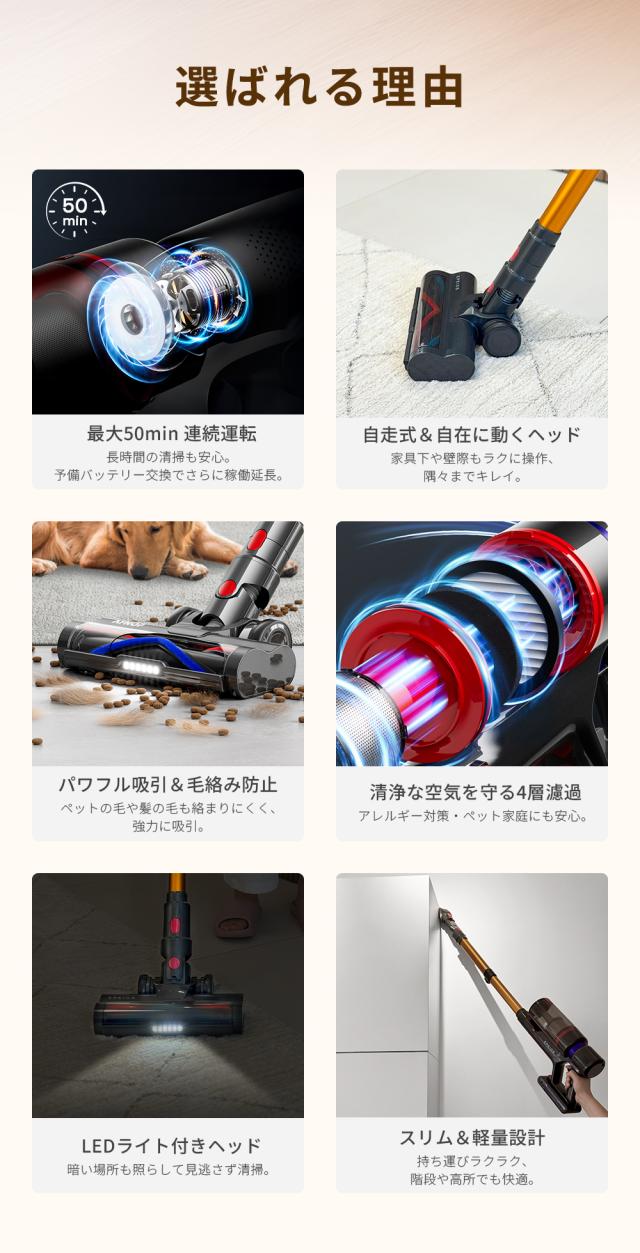 ★【最新型!28KPa強力吸引&250Wハイパワー】 ★【最長50分連続運転&着脱式バッテリー】 ★【高性能クリーナーヘッドX1(V字型ローラー+自走式+LEDライト)】 ★【LCDディスプレイ搭載】 ★【大容量1Lダストカップ&お手入れ簡単】 ★【4層HEPA濾過システム】 ★【PSE認証済みで安心安全】 ★【🎁ギフトにも最適】 ★【アフターサービス万全】 |