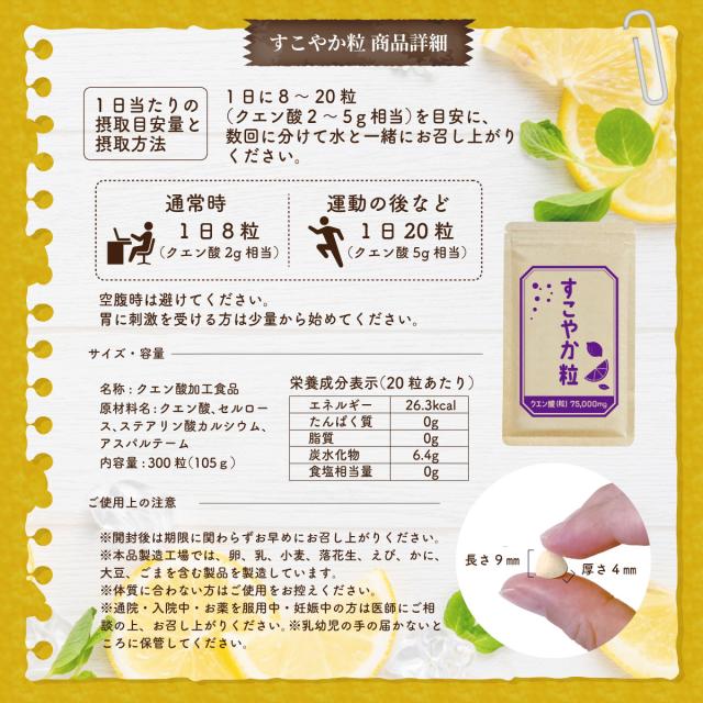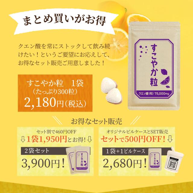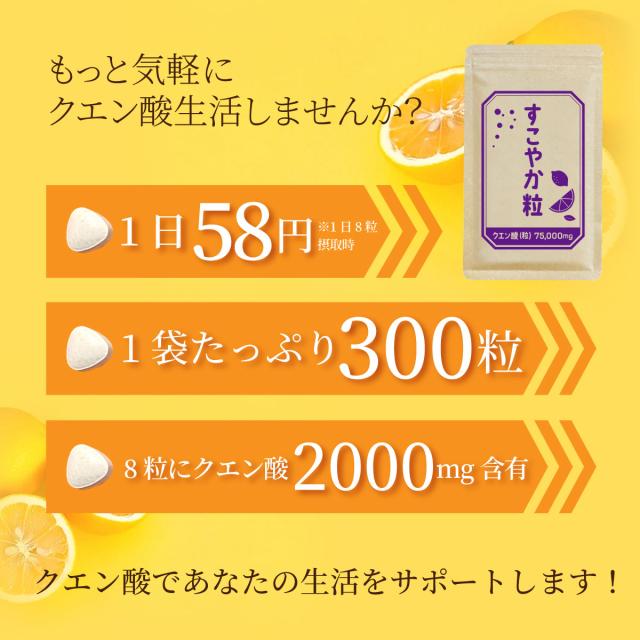 【セット割】すこやか粒 クエン酸 300粒×2袋セット【食用】 サプリメント サプリ【国内製造】健康で元気な毎日の素。