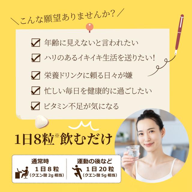 毎日飲みたいクエン酸を粒にしました!保管しやすい!毎日の元気の素「クエン酸粒」。