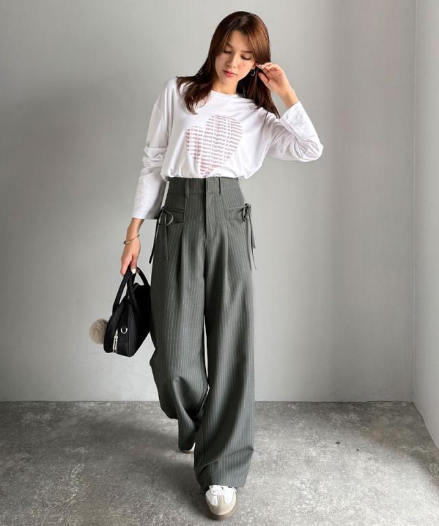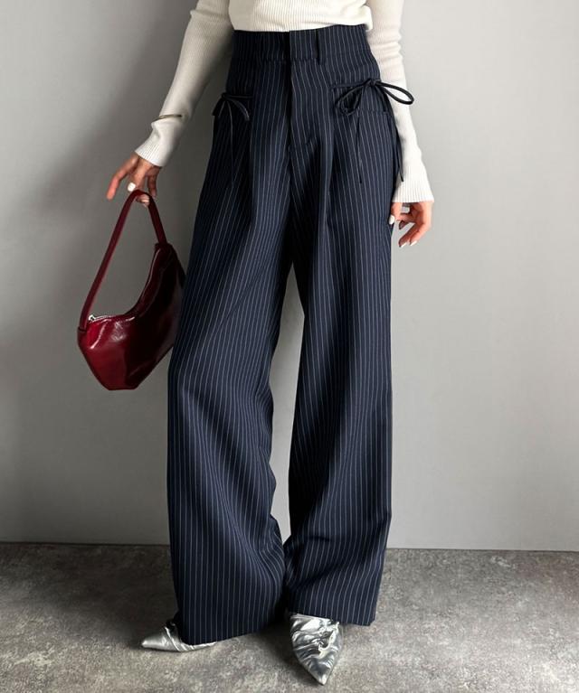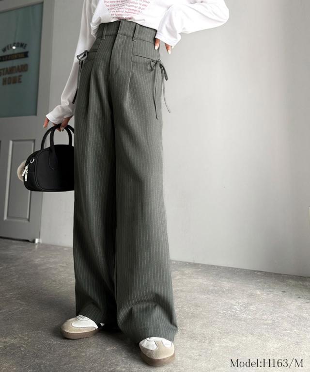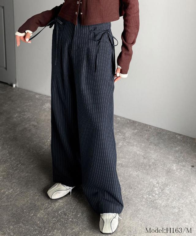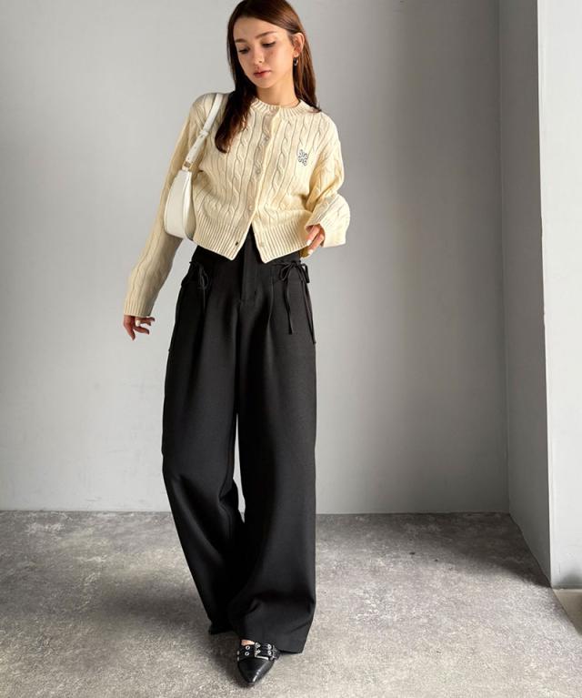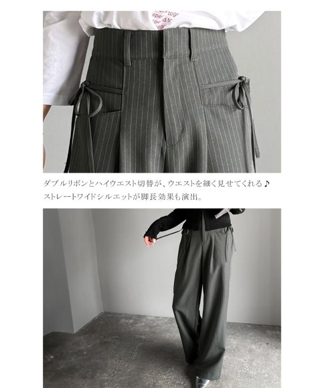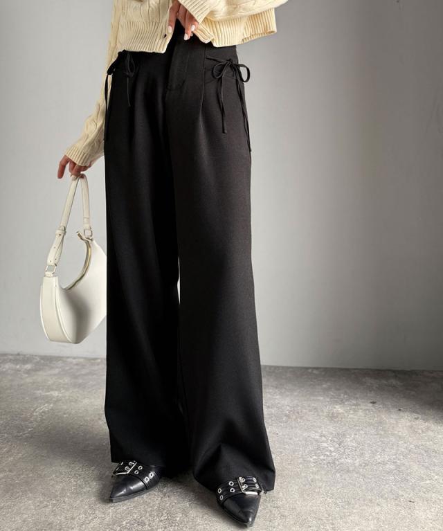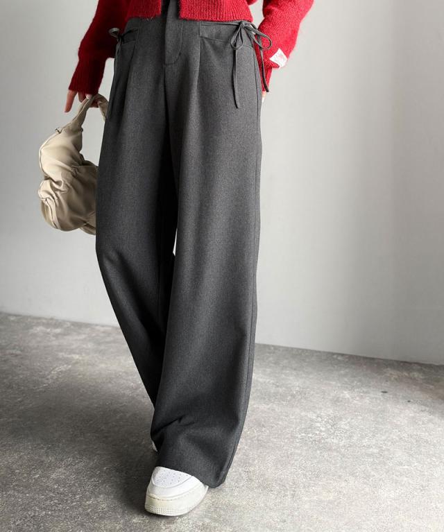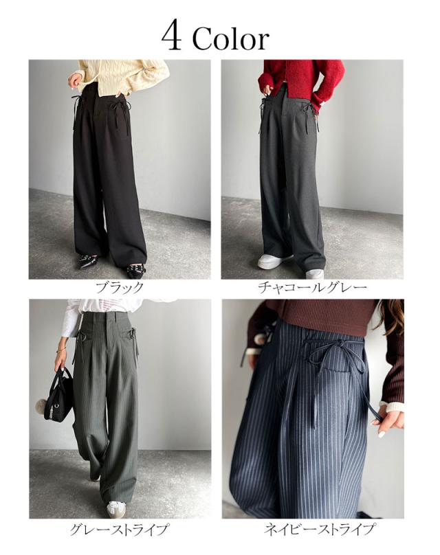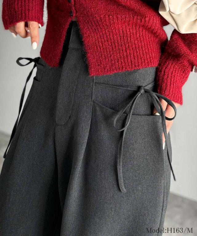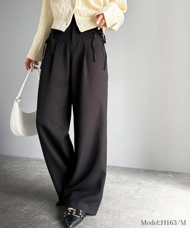 クラシカルエルフ冬新作 mily bilet ボトムス パンツ レディース スラックス ワイドパンツ タック入り サイドリボン ストレート 脚長効果 華やか 美ライン 上品 きれいめ ワイドシルエット ガーリースタイル オンオフ 大きいサイズ 2025aw mi1329064