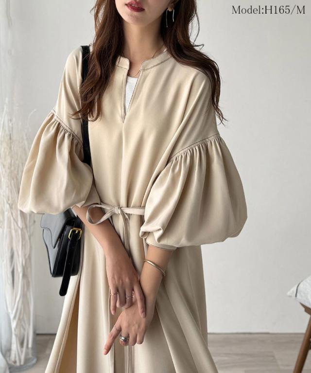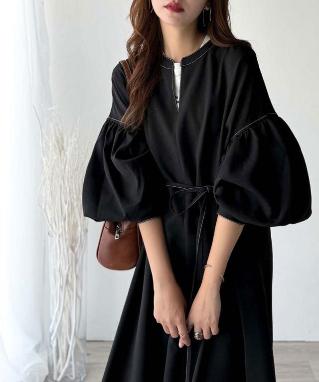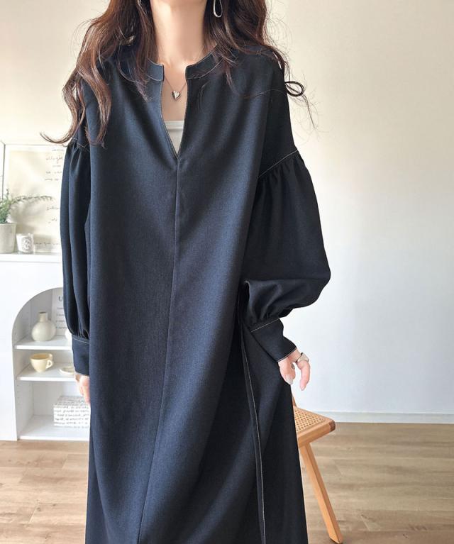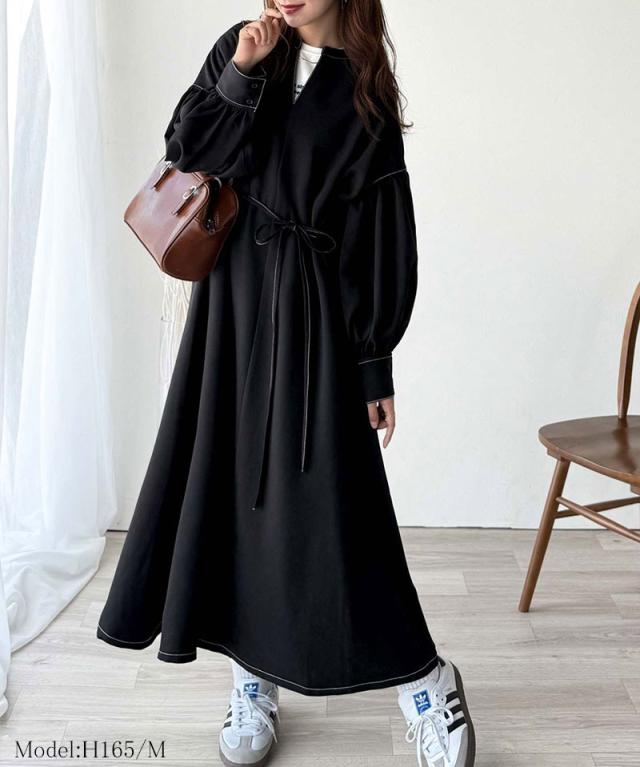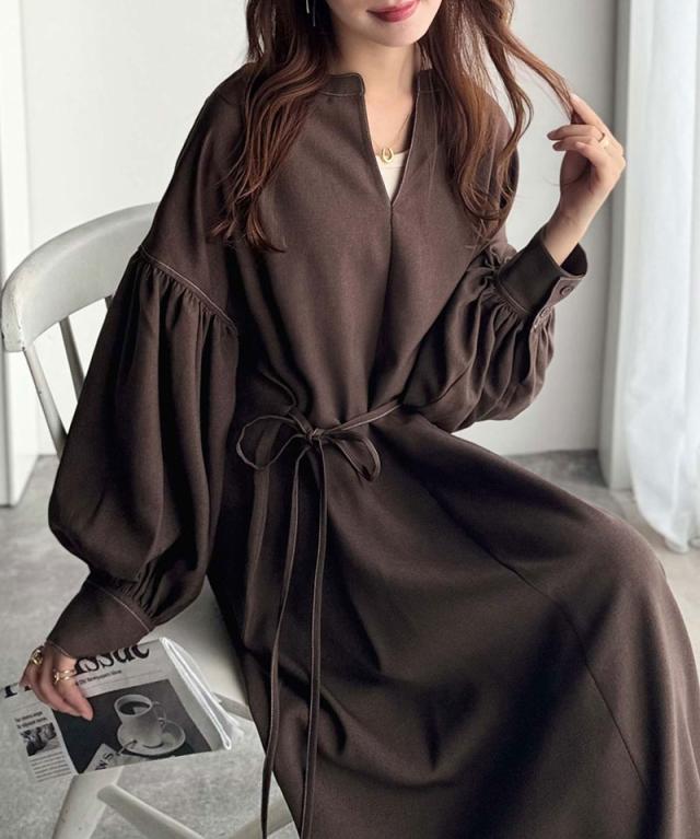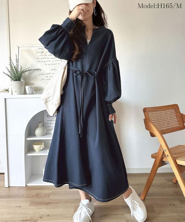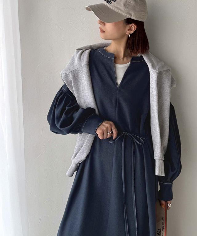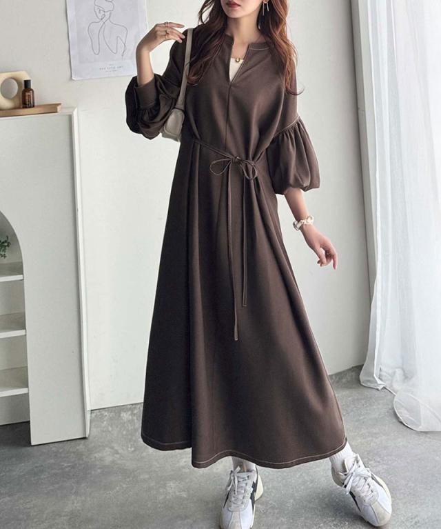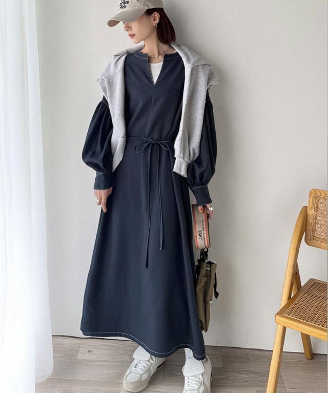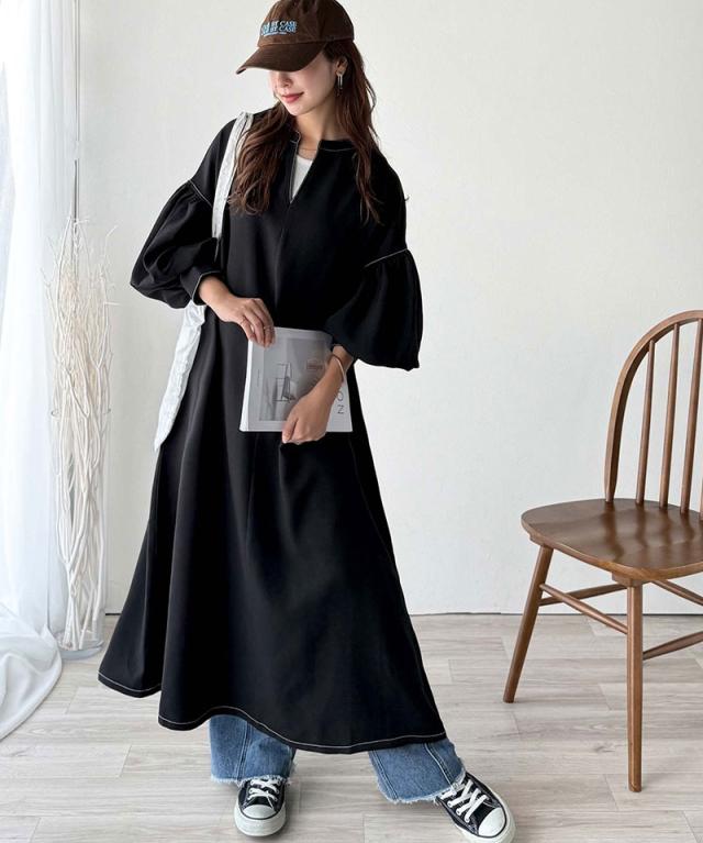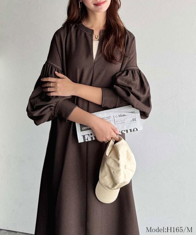 クラシカルエルフ冬新作 ワンピース レディース 配色ステッチ キーネック メリハリシルエット 抜け感 シンプル カジュアル 主役級 体型カバー 華奢見え きれいめ オンオフ お出かけ ウール ゆったり 大きいサイズ 2025aw ce1265036