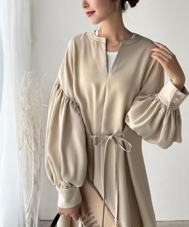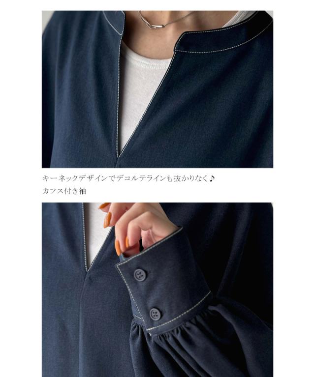 フロントのキーネックが顔まわりをすっきり見せてくれるのがポイント。