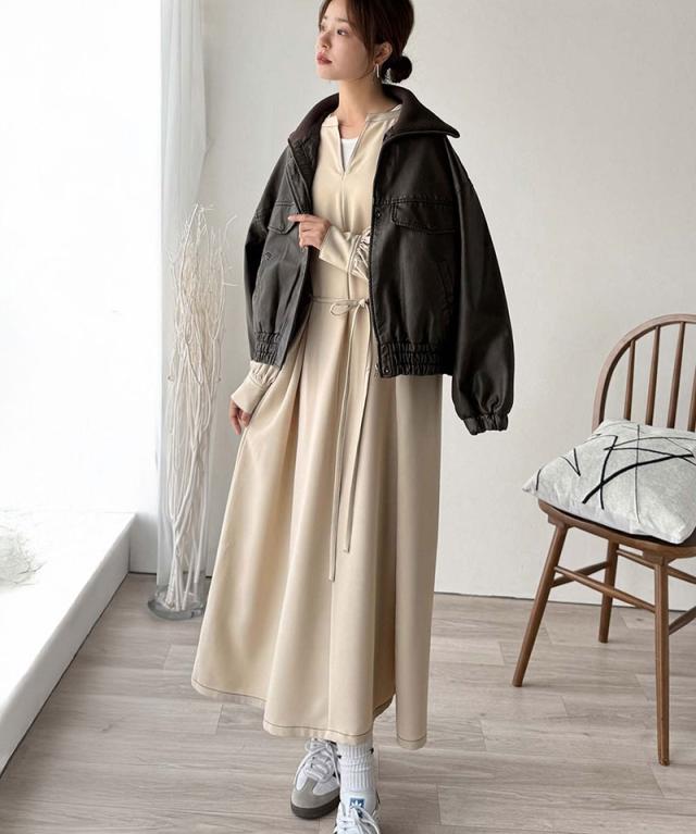 配色ステッチが施されているので、一枚で着てもシンプルになりすぎず、コーデの主役として活躍します。