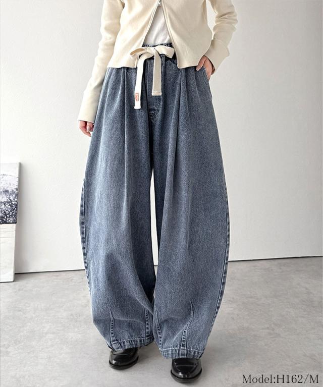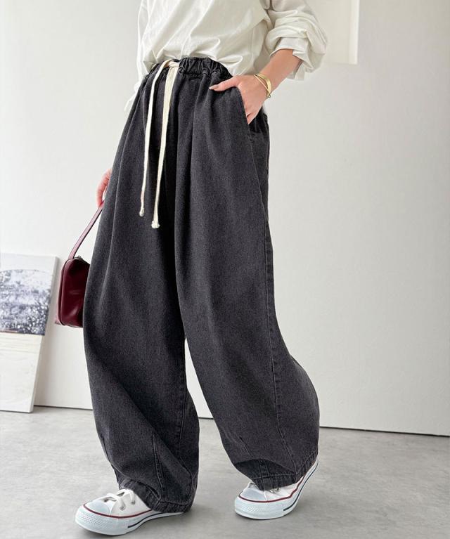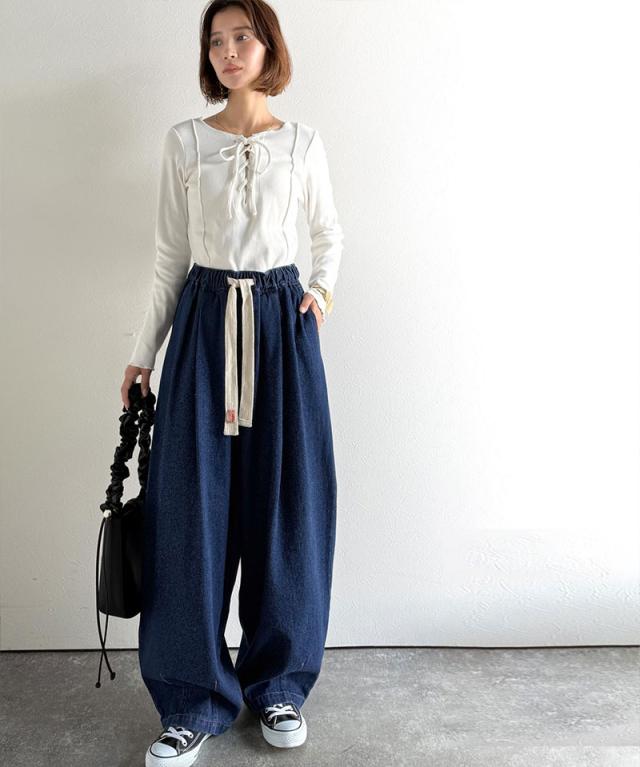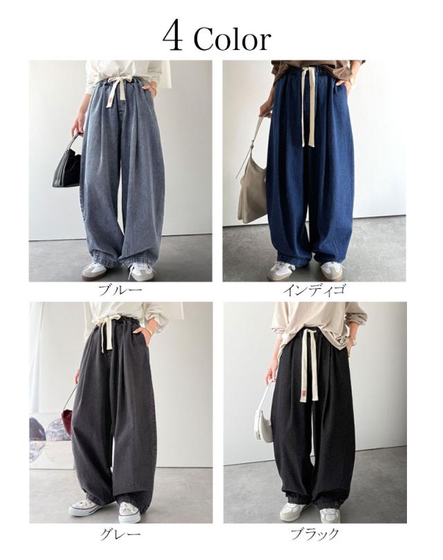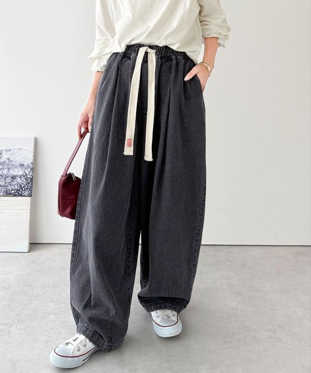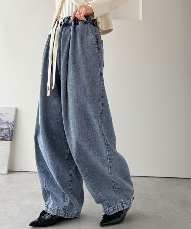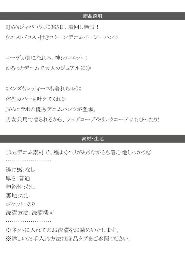 クラシカルエルフ秋新作 java ジャバコラボ ボトムス パンツ レディース 着回し 無限 ウエスト ドロスト 付き コクーン デニム イージーパンツ 大きいサイズ 2025aw jv1070189