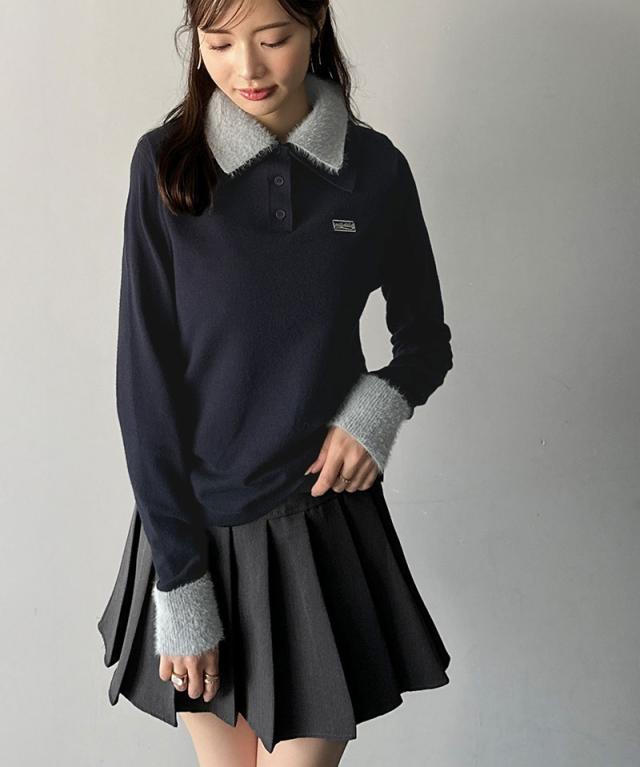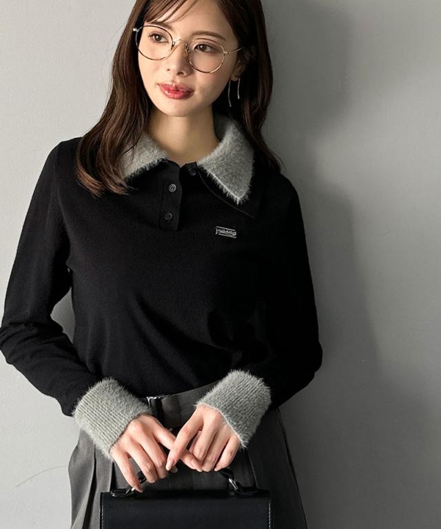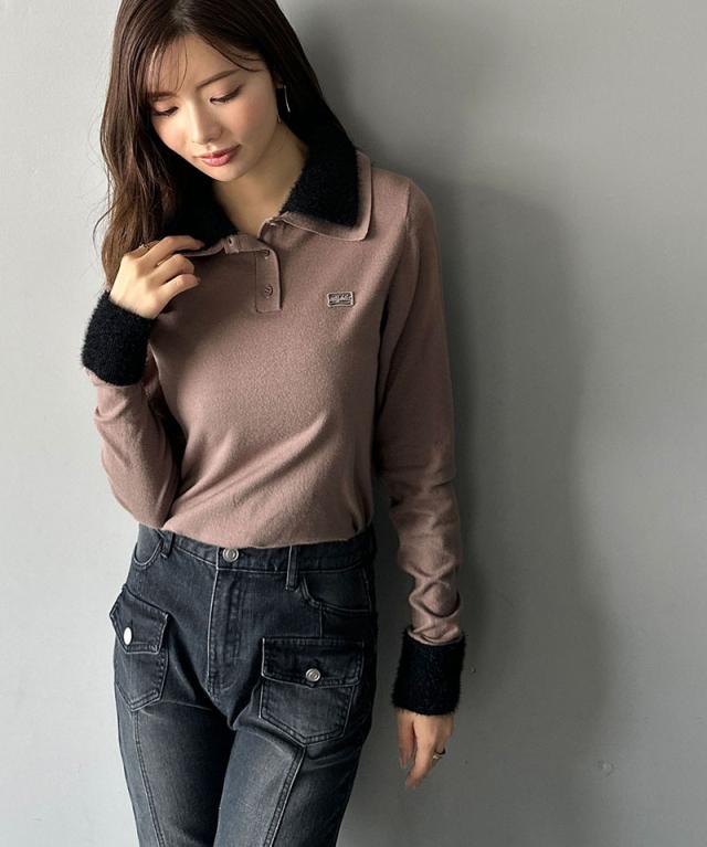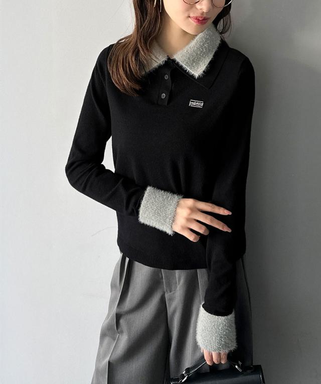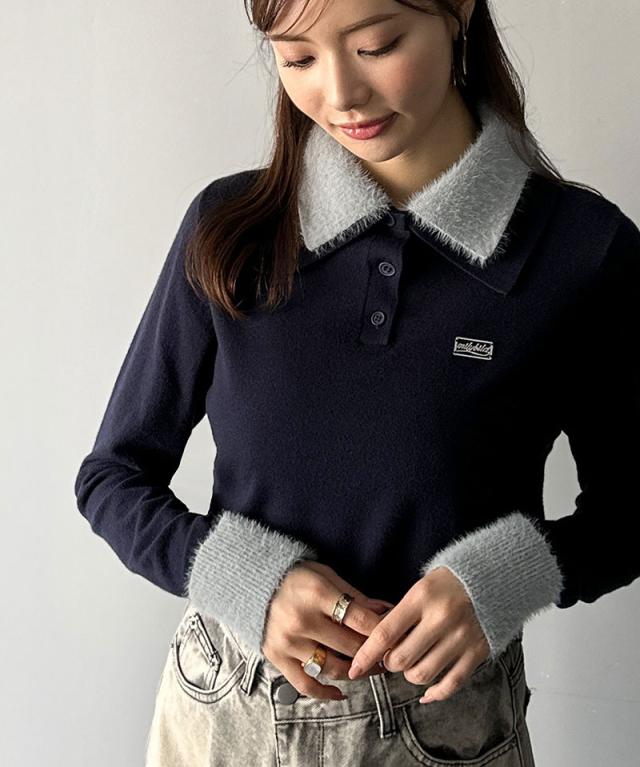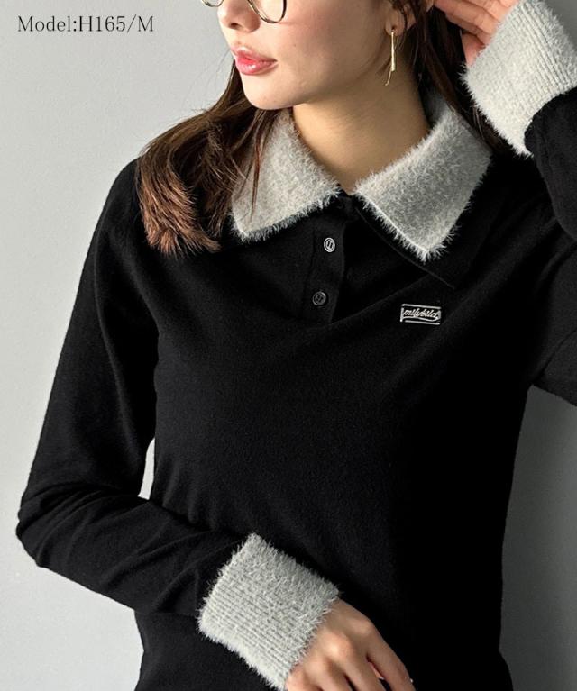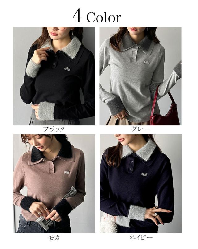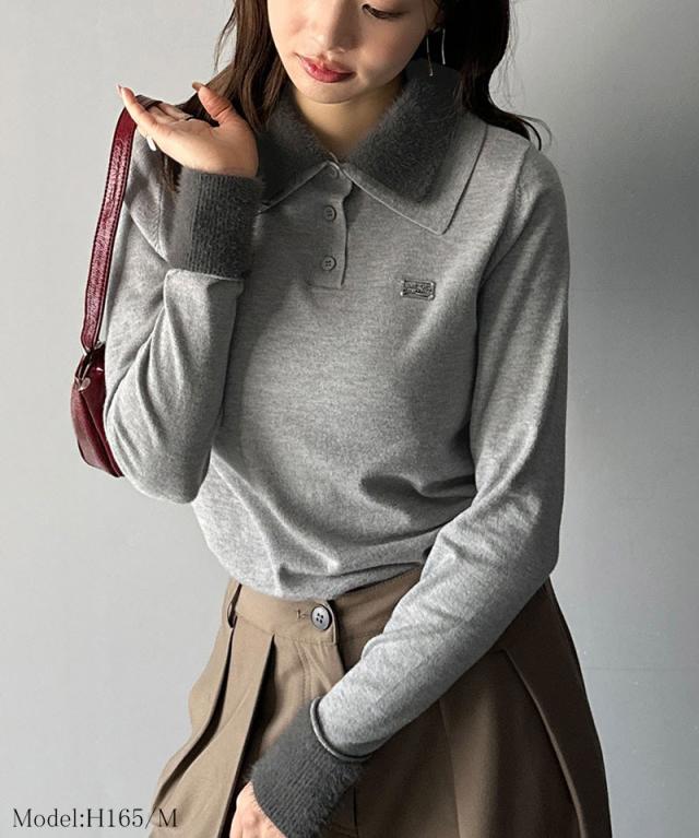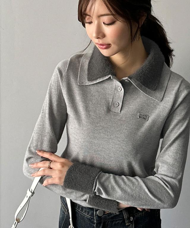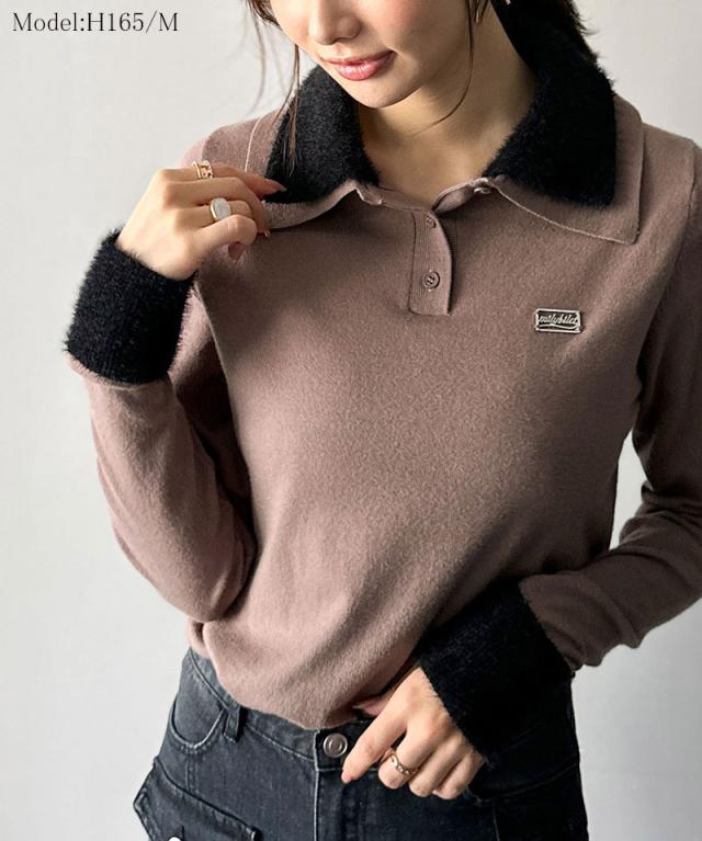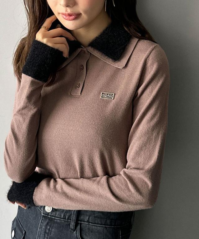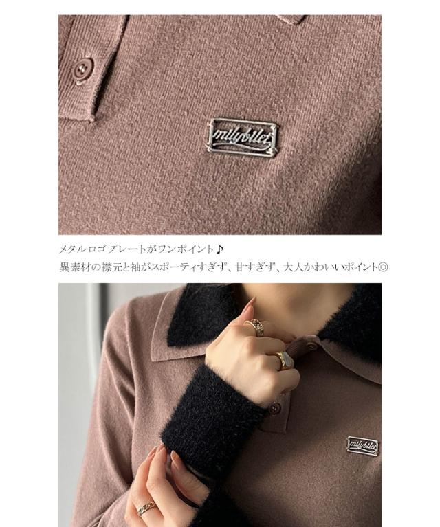 クラシカルエルフ秋新作 mily bilet トップス ポロシャツ レディース ニット ファー ブル襟 ロゴプレート 上品 カジュアル 柔らか 可愛い ニットポロ シンプル カジュアル デイリー きちんと感 ほどよいゆとり レディライク 大きいサイズ 2025aw mi1029150