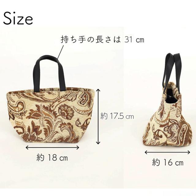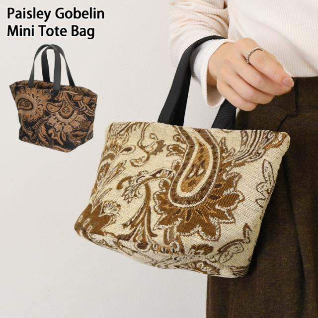 新作 ペーズリー柄 ゴブラン織り ミニトートバッグ レディース トートバッグ 軽量 小さめ ミニトート ハンドバッグ ランチバッグ 弁当 水筒 マチ広 コンパクト 自立 手提げ おしゃれ 上品 通学 通勤 旅行
