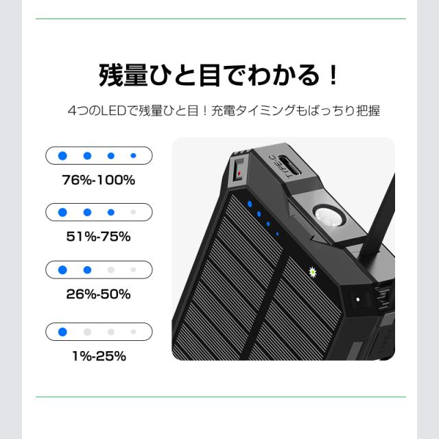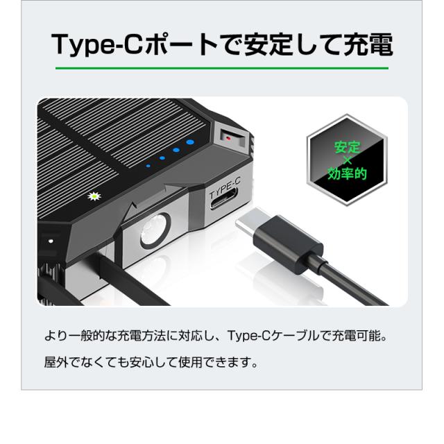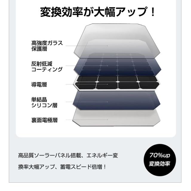 1.高効率ソーラー充電システム:日光があれば電力確保可能
