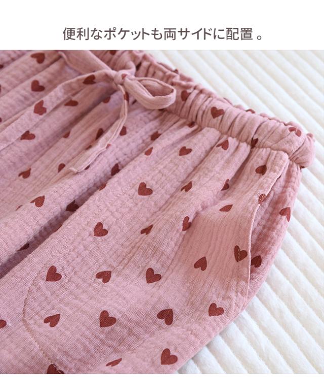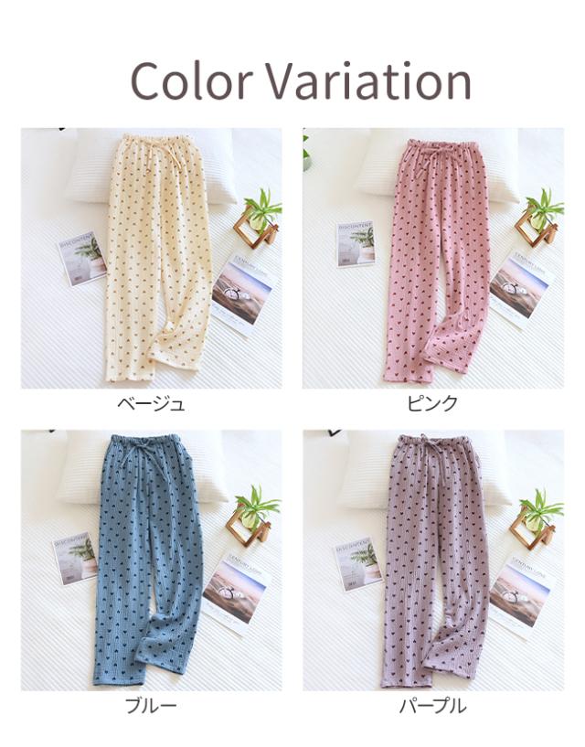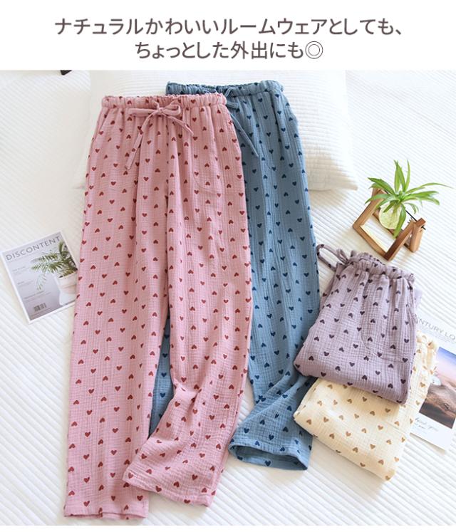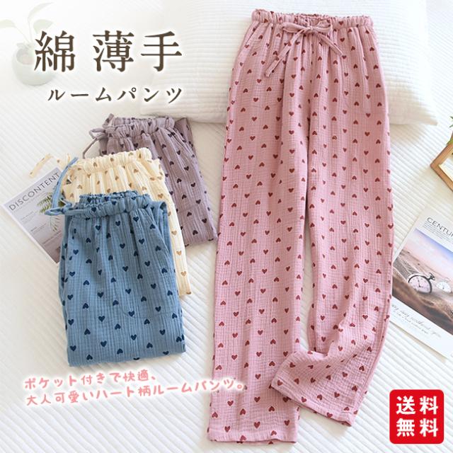 【限定クーポン 100 円 OFF】新作 パンツ ルームパンツ パジャマ レディース ポケット付き ウエストゴム ゆったり 綿 薄手 かわいい 部屋着 ハート柄 ヒョウ柄 ロングパンツ 春夏秋