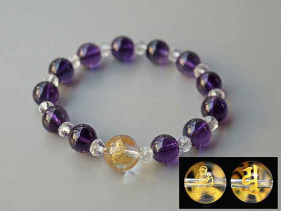メール便・送料無料 高野山 開山1200年 空海 アメジストブレスレット M/L 弘法大師 ブレスレット パワーストーン 開運 パワーストーンブレスレット パワーストーンアクセサリー 天然石 梵字 彫刻 アメジスト 紫水晶 誠実 調和 愛の守護石 真実の愛 恋愛成就 お守り 人気