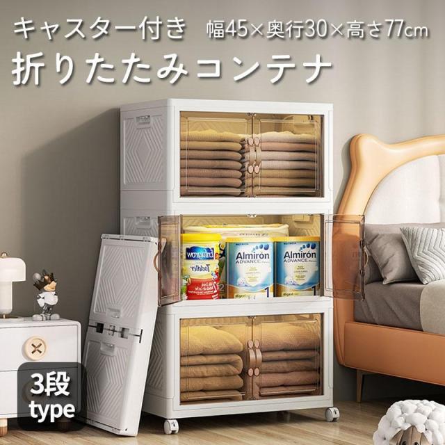 【タイムセール】チェスト 折りたたみ 3段 幅45cm 衣類収納 折りたたみコンテナ オリコン キャスター付き 収納ボックス